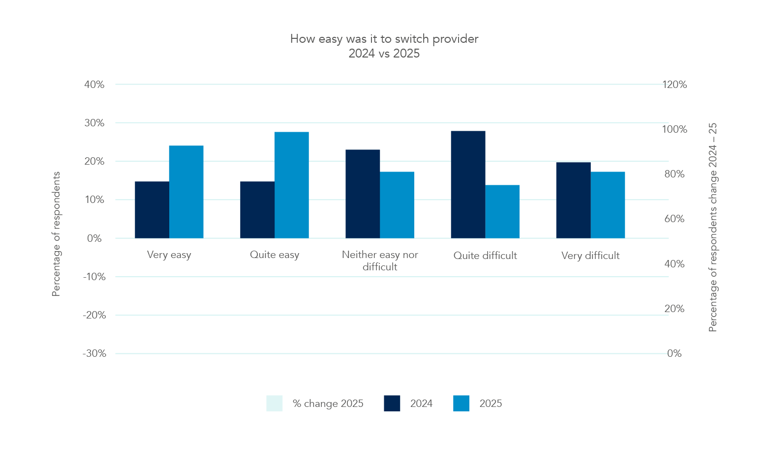 Cumulatively, over half of respondents find switching easy in 2025 – the highest across all years.