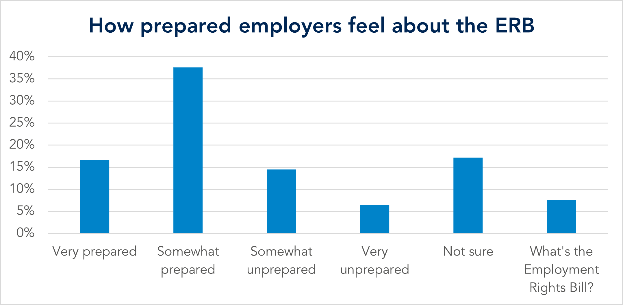If you’re just learning about the ERB in this guide, you’re not alone! A concerning 7.5% of employers report that they’ve not heard of the Employment Rights Bill at all.