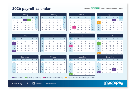 Moorepay's free payroll calendar for 2026. Never miss a date and stay on top of bank holidays with our 2026 calendar!